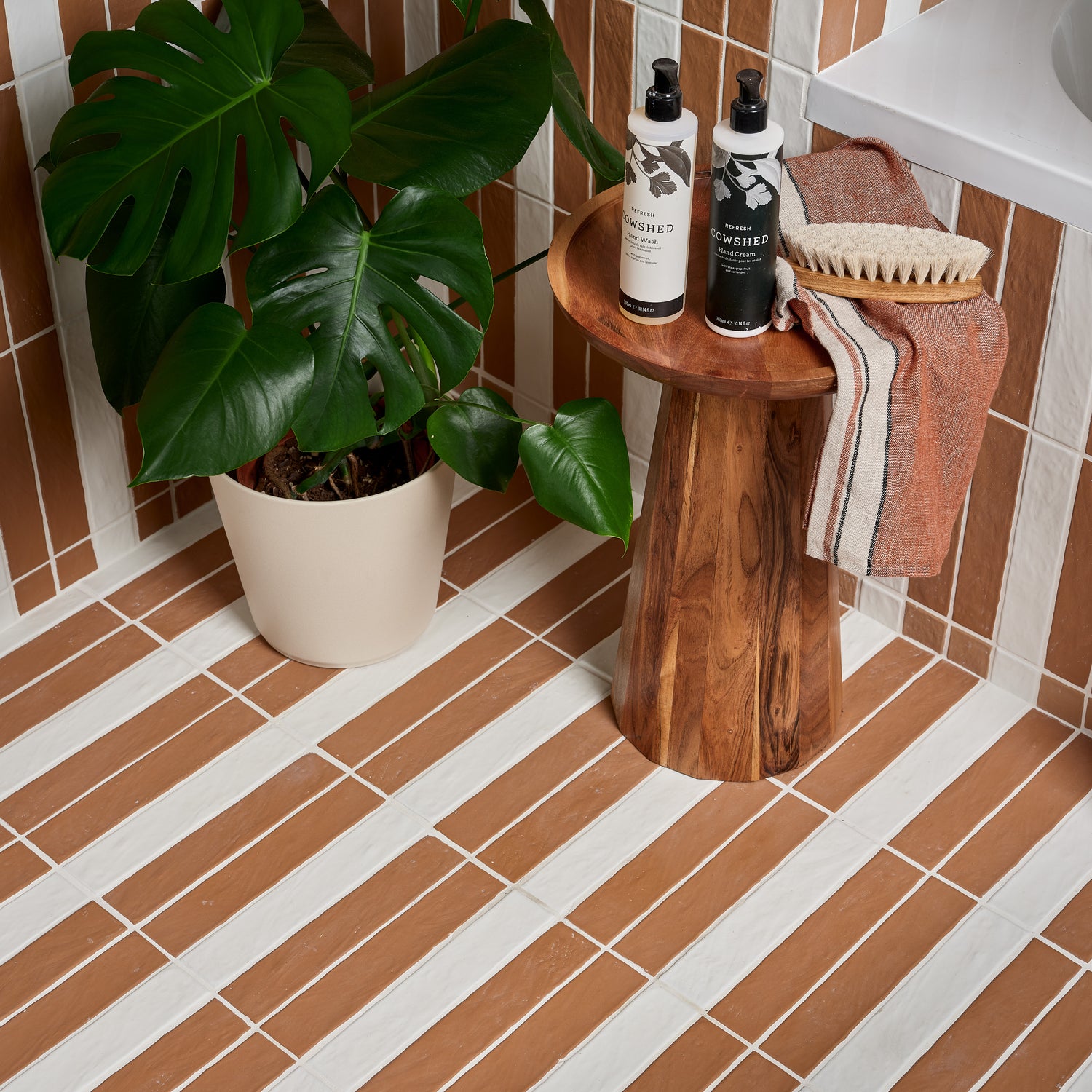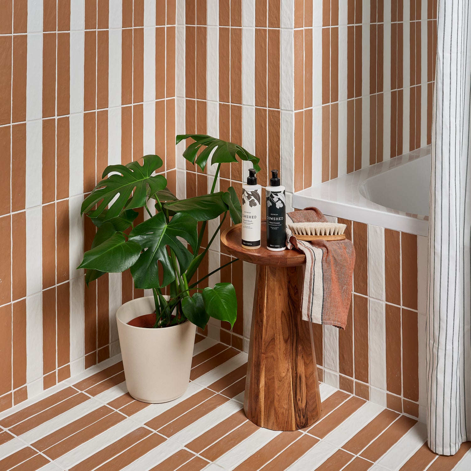 Earthenware is inspired by Italian pottery sold on the streets of villages on the Amalfi Coast. Brought to life in many versatile shades and replicating the texture of pottery through its matt finish. Working individually or paired together, Earthenware tile is a thin rectangle shape and so can be used to create vertical, horizontal or unique patterns across both interior walls and floors.
