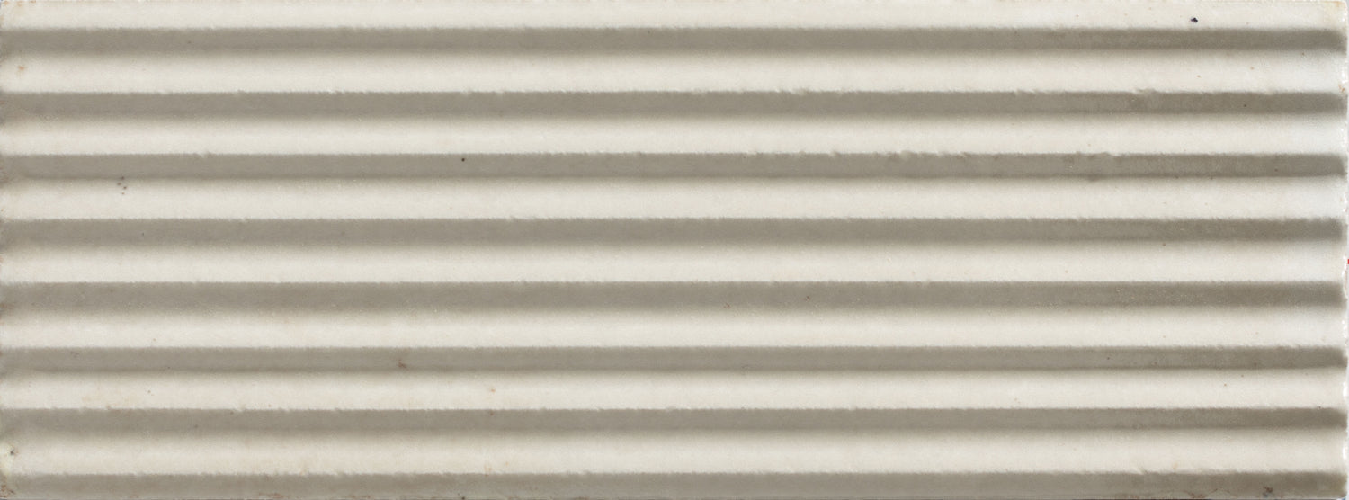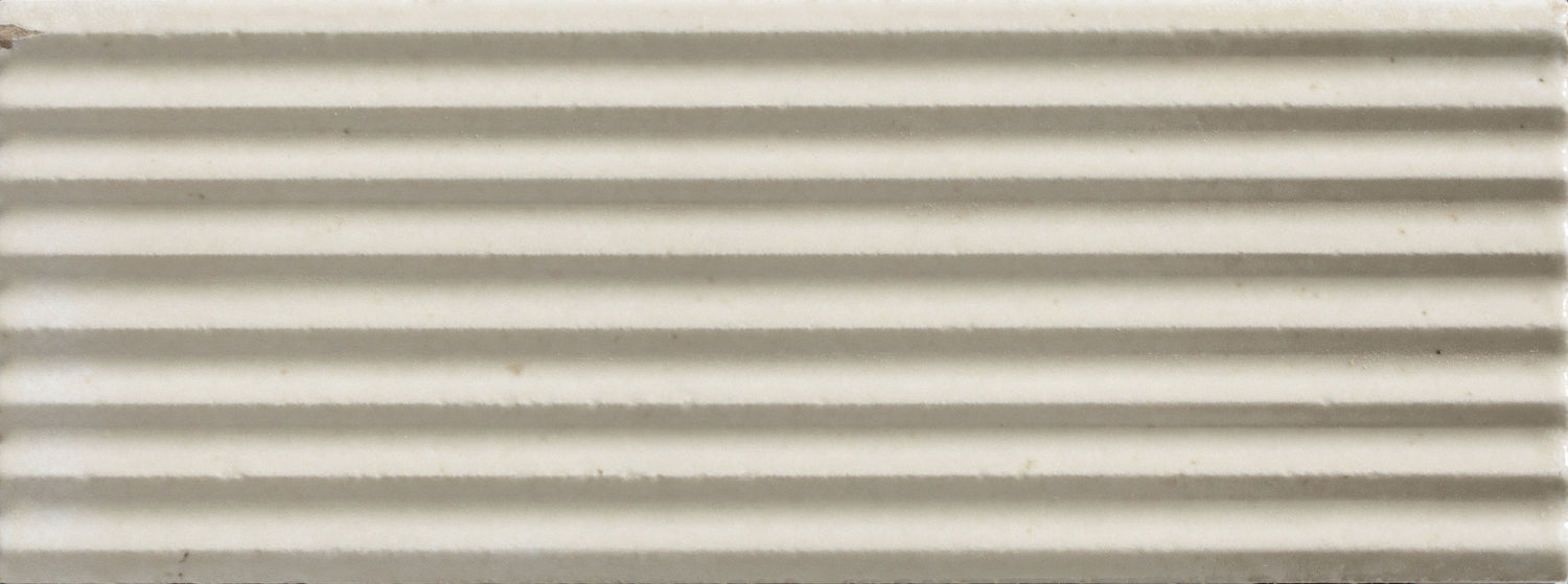 An understated porcelain in creamy off-white with a gently pleated surface that adds depth and detail. A timeless backdrop with a refined twist.