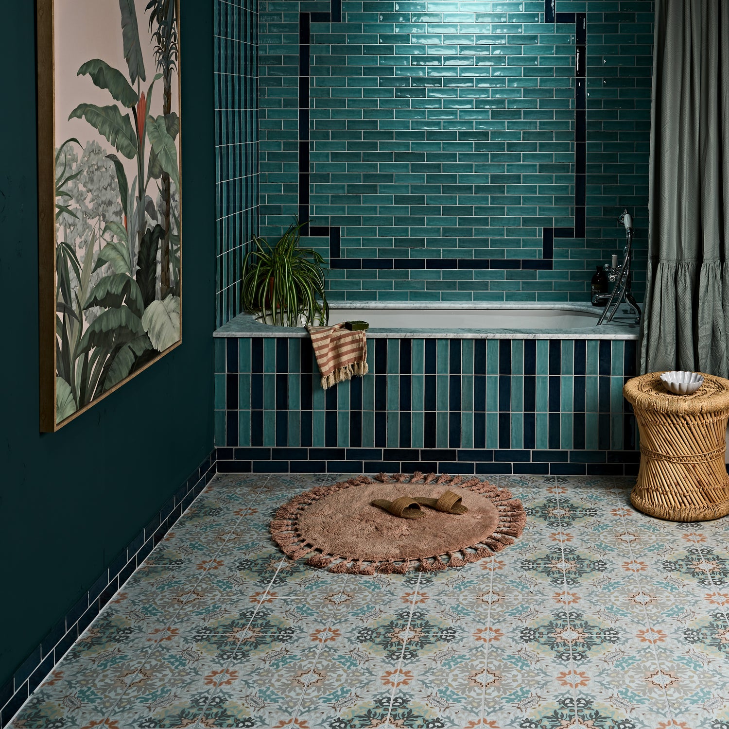 Inspired by traditional Indian textile patterns, Kashmir has a highly intricate pattern repeat, ideal for unique, maximalist interiors. Suitable for interior and domestic exterior walls and floors. Slip rating: R10, PTV+36 when wet.