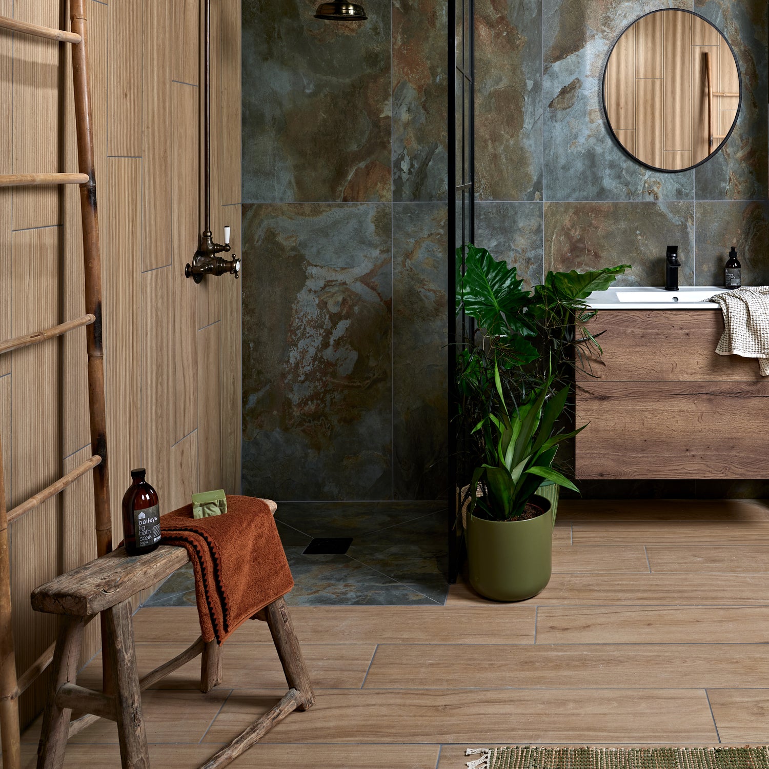 Taking its cue from natural multicoloured slate; these tiles have a vivacious, realistic print and come in versatile colours, which lend themselves perfectly to the honed finish for an easy to maintain, modern feel. Rectified.