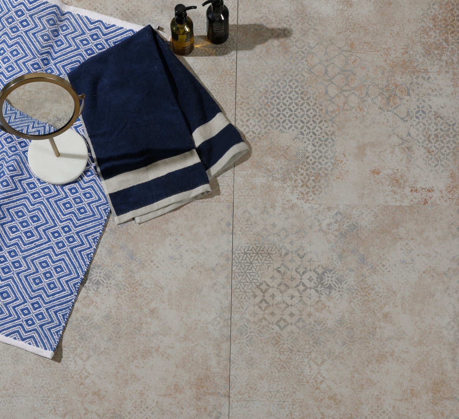 Eclectic yet understated, Loft Vintage contains a unique blend of geometric patterns faded together and overlaid onto a concrete-effect backdrop blurring the lines between traditional and contemporary design.