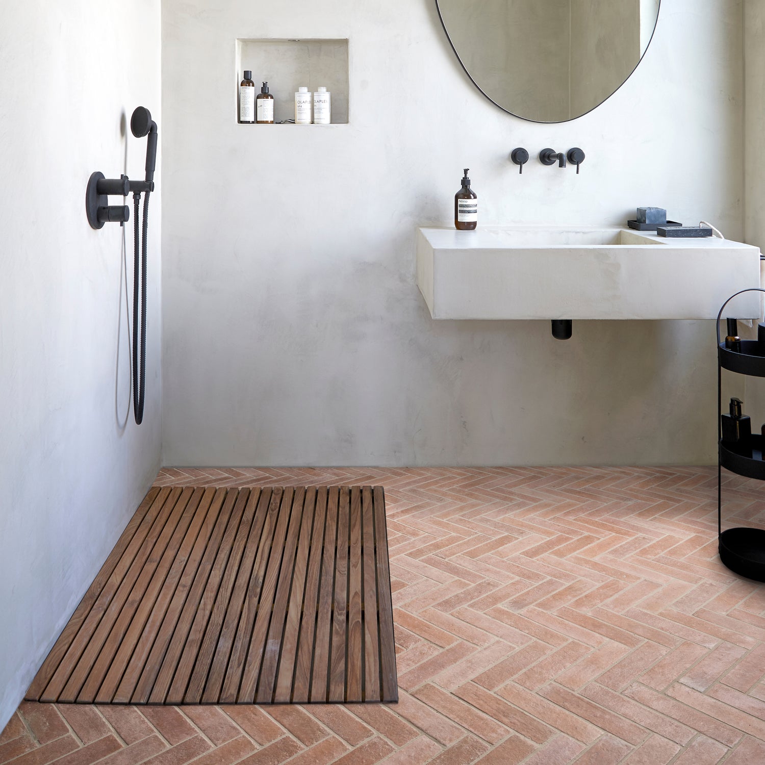 A faithful reproduction of our well-known Marlborough Terracotta in a hardy porcelain format, these tiles replicate all the undulations and rustic charm of real terracotta. Create glossy drama with the glazed Bottle Green and Cotton White options, or create an Italian-style herringbone floor indoors or out with the Natural.