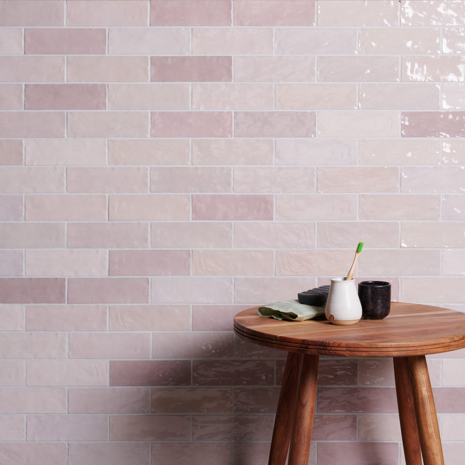 Oasis gloss ceramic tiles have a Moroccan Zellige feel, adding a textured touch to interior walls. These tiles come in varying tones to create interest. Available in 6 colours Green, Grey, Pink, Aqua and White. Contact us to enquire about other colours.