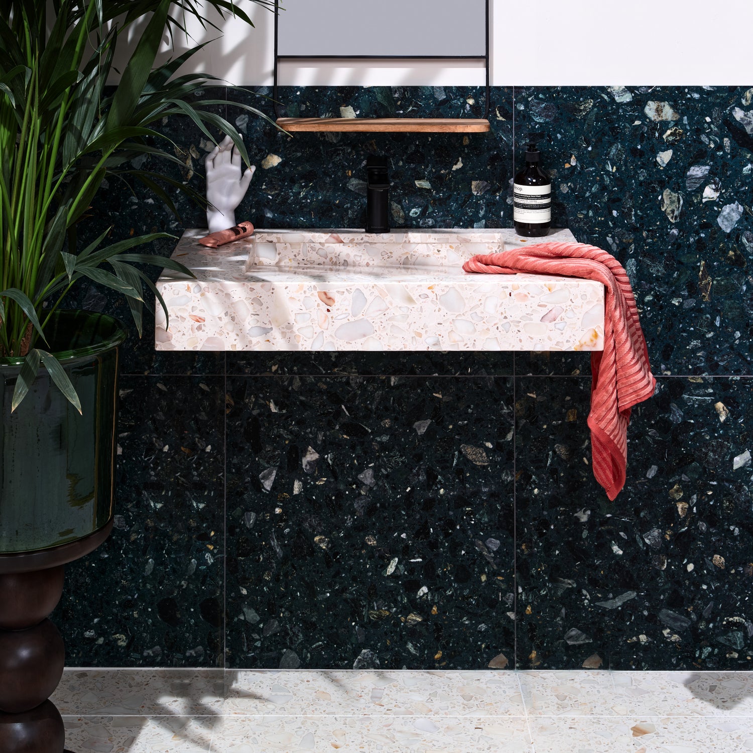 The Italian city of Venice is well known for its terrazzo filled buildings, and we took our inspiration for this range of resin-based real terrazzo tiles from landmarks and areas of the city. Rialto is made from recycled and waste marble materials, making it as sustainable as it is beautiful.