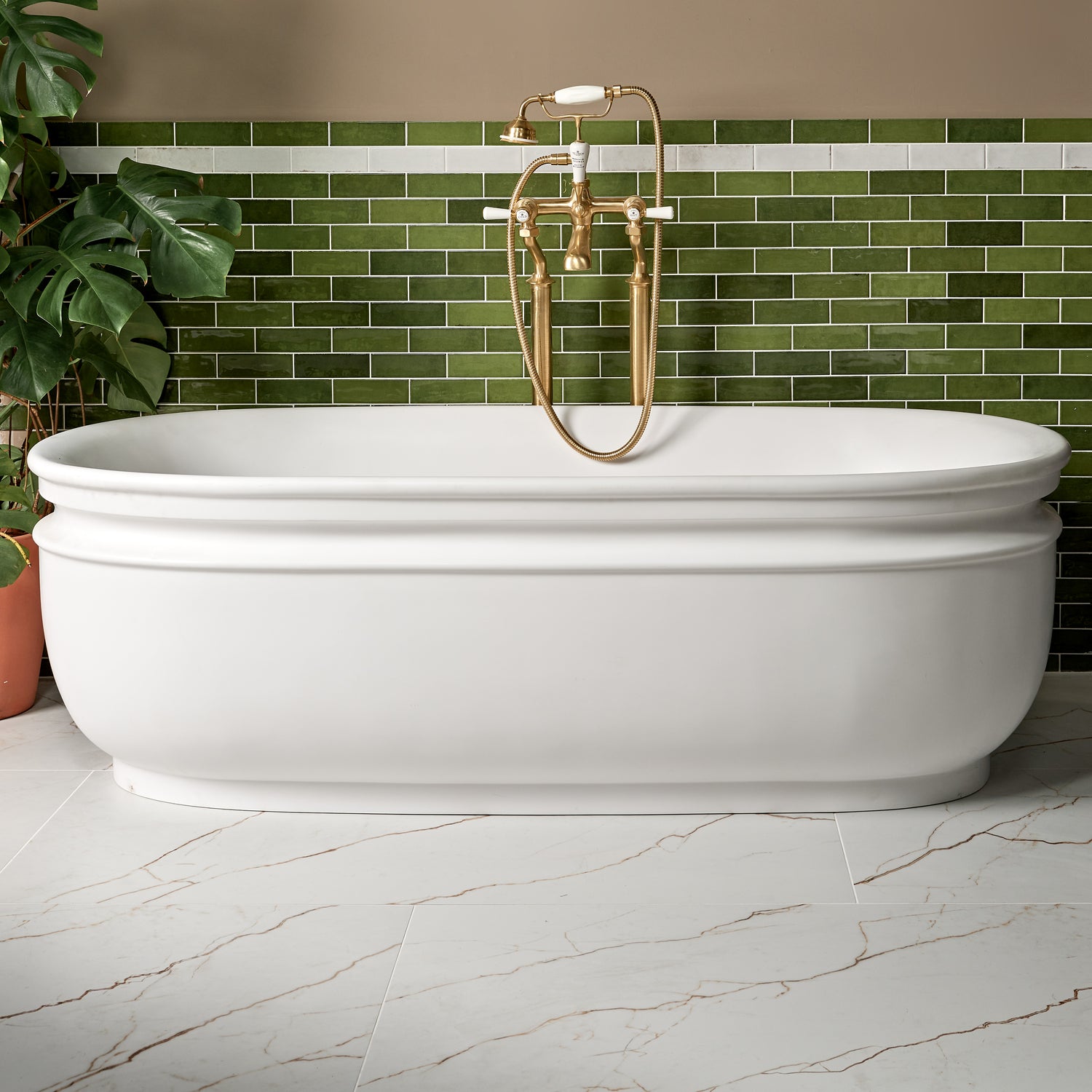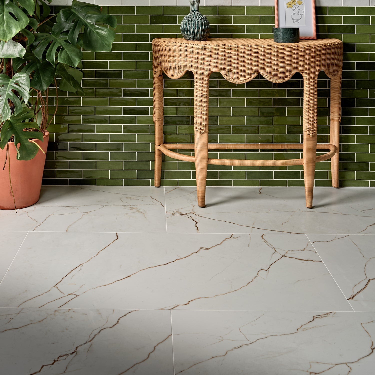 With feathery golden veining and an off-white background, Soprano truly is a remarkable marble effect porcelain tile, that oozes elegance. Rectified. R9 slip rating.