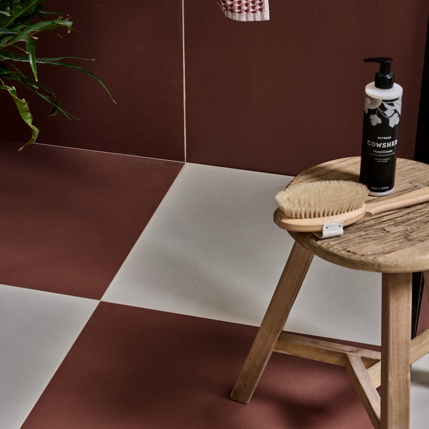 Plaster-effect walls are going nowhere so we’ve introducing a tile to give you that look for less with Stucco. A full-bodied porcelain tile. Their warm tones add to their velvety nature, and they’re great for colour-blocking.